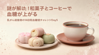 健康 乳がん2回経験者が血糖値を14日間記録してみた|Day4「謎が解けた!和菓子とカフェインで血糖が上がる話」