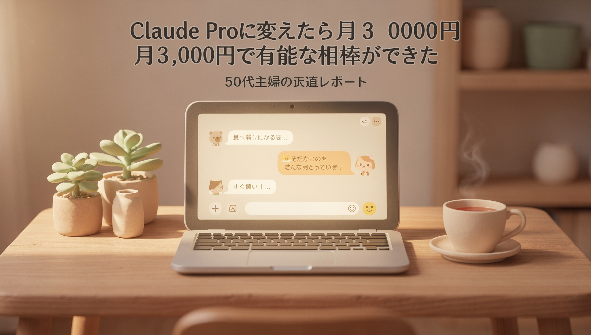 病気の相談、お金の不安、ブログの記事、パソコンの作業。全部一人で抱え込まなくていい。月3,000円で、そういう存在ができます。